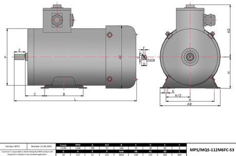 Max Motion MQS-112M6FC-S3 | IEC Motor 3HP, 1200RPM, 208-230/460V, Frame 112M, TEFC, Rigid Base