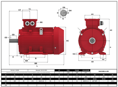 Max Motion IJA2100L-6-24 | IEC Motor 2HP, 1200RPM, 208-230/460V, Frame 100L, TEFC