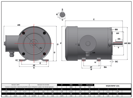 Max Motion MQSP-102L | NEMA Motor 1HP, 3600RPM, 208-230/460V, Frame 56C, TEFC, Rigid Base