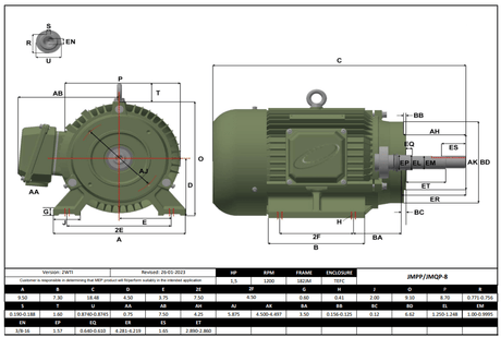 Max Motion JMQP-8 | Pump - JM Motor 1.5HP, 1200RPM, 208-230/460V, Frame 182JM, TEFC
