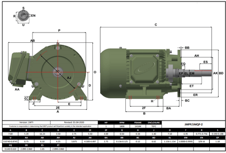 Max Motion JMQP-12 | Pump - JM Motor 2HP, 1800RPM, 208-230/460V, Frame 145JM, TEFC