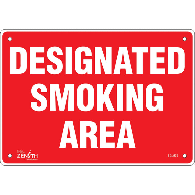 "Designated Smoking Area" Sign, 7" x 10", Aluminum, English - Aluminum is backordered and will ship as soon as it is back in stock.