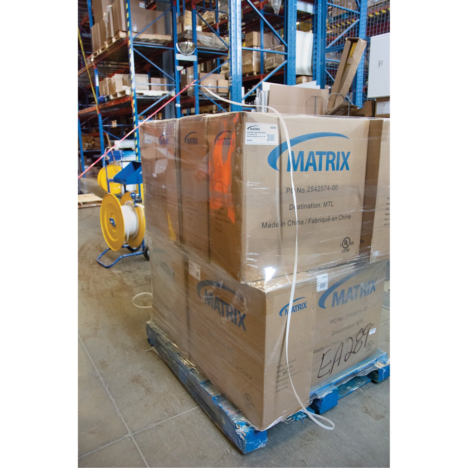 - Decreases the time it takes to manually strap pallets