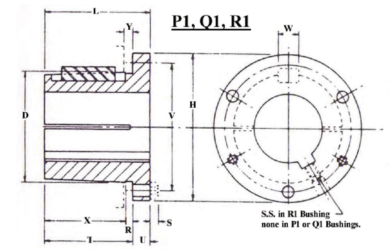 Q1-1-3/4 Split Taper Bushing, 1-3/4" Bore - Q1 / 1-3/4" is backordered and will ship as soon as it is back in stock.