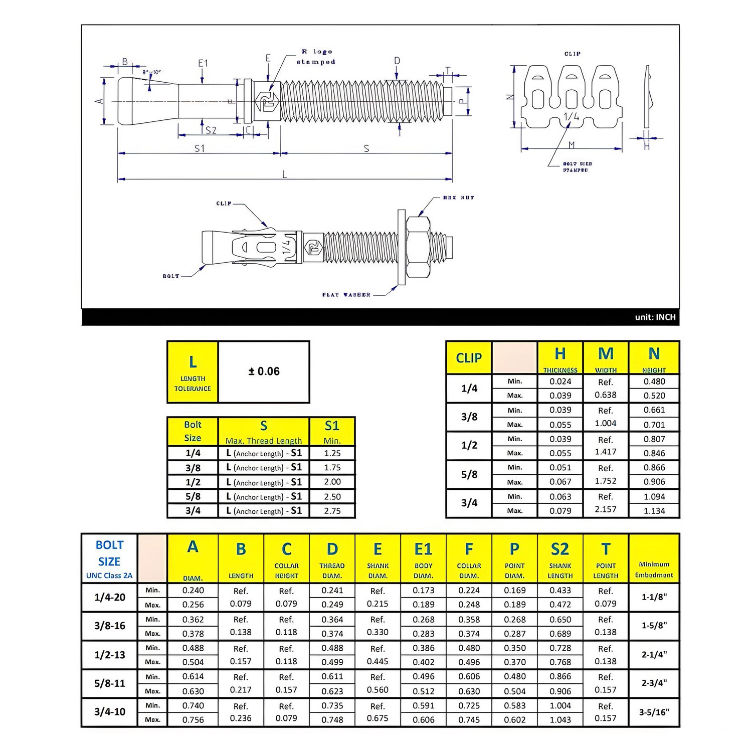 - Important Information: As a safety factor, industry standards recommend using 25% of the ultimate load (Break Point). Ultimate load in 2000 PSI concrete.