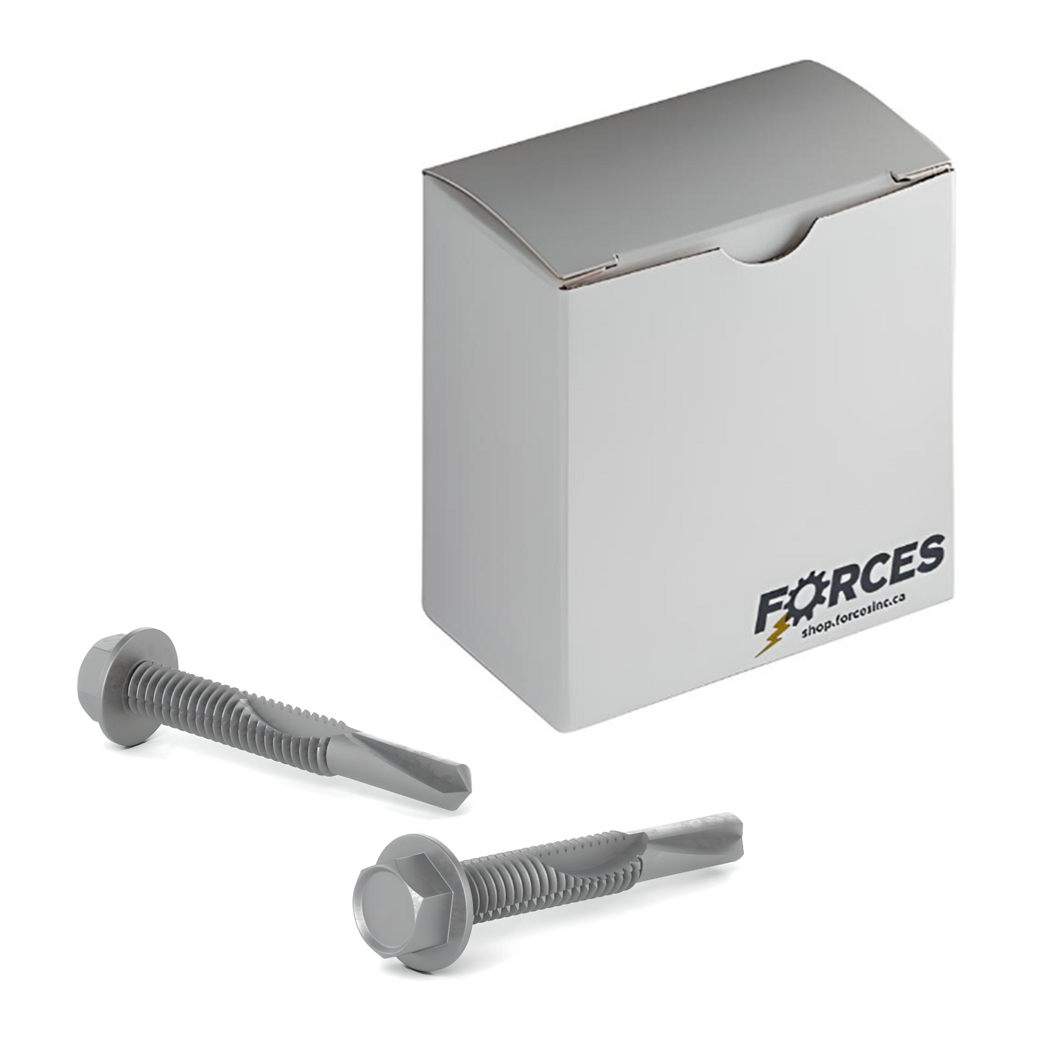 Forces Inc #12 x 1-1/2" Metal Screw Hex Washer Head Hex Drive #5 Self-Drilling Point - Steel Silver RUSPERT