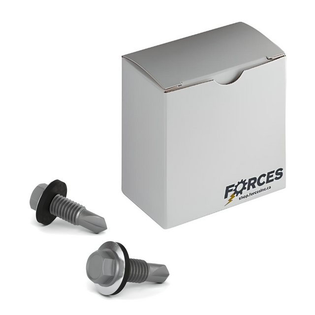 Forces Inc #12 x 1-1/4" Metal Roofing Screw Hex Head W/ Washer Self-Drilling TEK #3 Point - Steel Silver RUSPERT