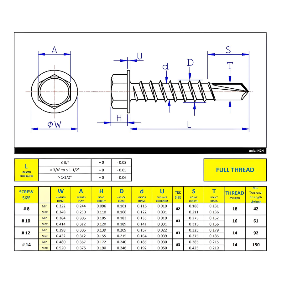 Product Details : #12 x 3" Metal Screw Hex Washer Head Hex Drive #3 Self-Drilling Point - Steel Silver RUSPERT