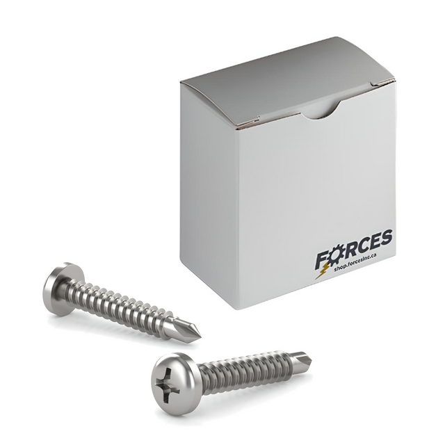 Forces Inc #14 x 2" Metal Screw Pan Head Phillips Drive #3 Self-Drilling Point - Stainless Steel 410H
