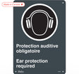 "Protection Auditive Obligatoire - Ear Protection Required" Sign , 14" x 10", Aluminum, Bilingual with Pictogram