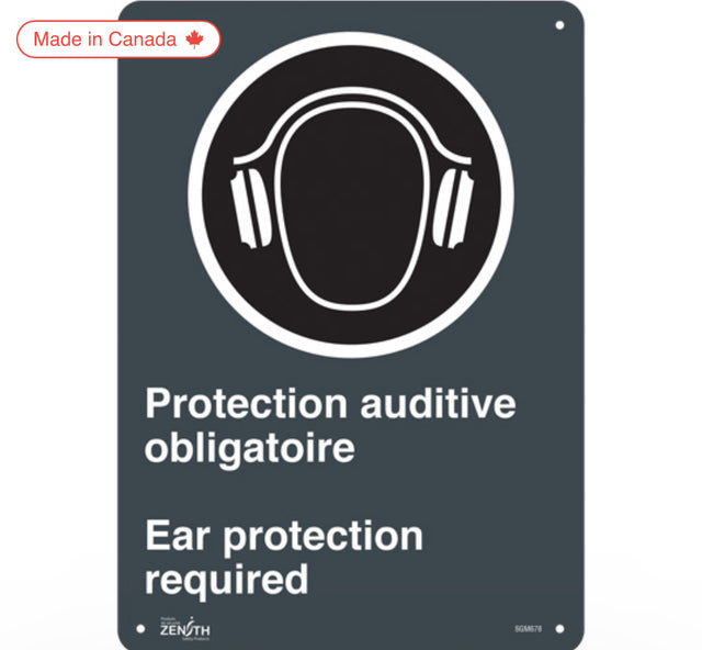 Zenith Safety Products "Protection Auditive Obligatoire - Ear Protection Required" Sign , 14" x 10", Aluminum, Bilingual with Pictogram