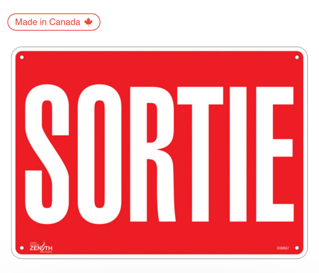 Zenith Safety Products "Sortie" Sign , 10" x 14", Aluminum, French